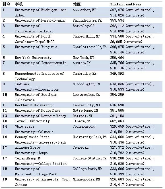 2018年USNews美国最佳本科保险