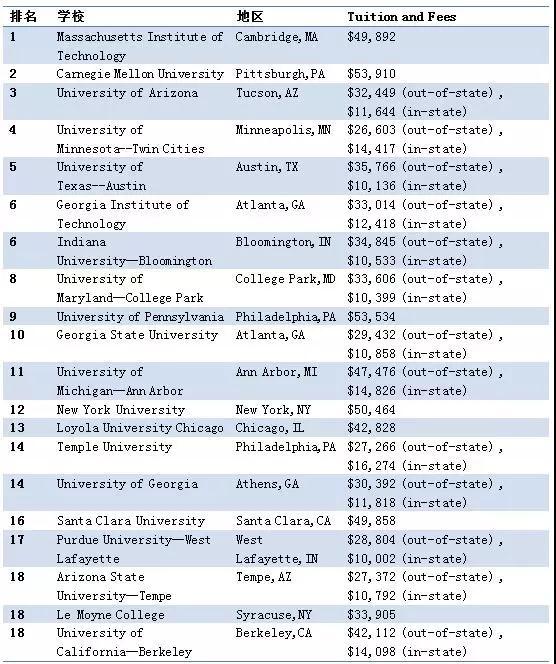 2018年USNews美国最佳本科管理信息系统