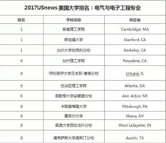 五、 2017usnews 电气工程专业