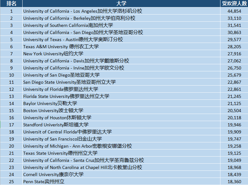 加州真不愧是大众情人,最受欢迎的大学三分之一在 加州 ,榜首UCLA一点都不意外,毕竟人家是新生申请人数11W+… 德州 和 佛罗里达州 仅次于加州,异军突起。而顶级名校藤校却只有康奈尔上榜,相当理性了!