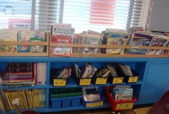 这是教室内的书架,学生可以随时借阅。学生使用的书都归教室所有,除了参考书,还有各式各样适合小学生的书籍,并分类整理。学生可以按照可以阅读的等级来选择图书。