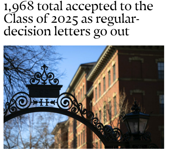 哈佛大学去年的总录取率为4.92%,录取人数为1,980,而今年总录取人数为1,968(常规阶段录取了1,223 )。早申请阶段,哈佛录取率为7.4%,自2011年哈佛恢复REA以来,其早申录取率一直没有低于13.7%,而今年由于申请人数大幅度增长,但录取人数收紧,导致录取率断崖式下跌。