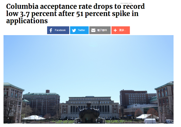 哥大今年整体录取率只有3.7%,仅次于哈佛大学,但在申请人数增幅上,哥大应该是增幅最大的,虽然康奈尔尚未公布数据……哥大申请人数增幅为51%,共收到60,551份申请,远超哈佛。