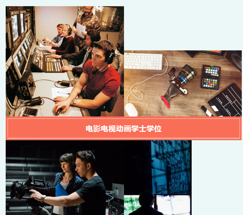 电影,电视和动画的主要学科侧重于培养学生的专业素养和艺术实践所需的创新思维和分析技能。 学位包括短篇叙事和动画电影制作,纪录片,电视拍摄团队合作,电影电视项目管理,视觉语言,数字电影后期编辑特效,声音设计,制作设计,电影电视动画编剧和项目开发,导演和高清广播电视演播室转播调控等多领域学习。