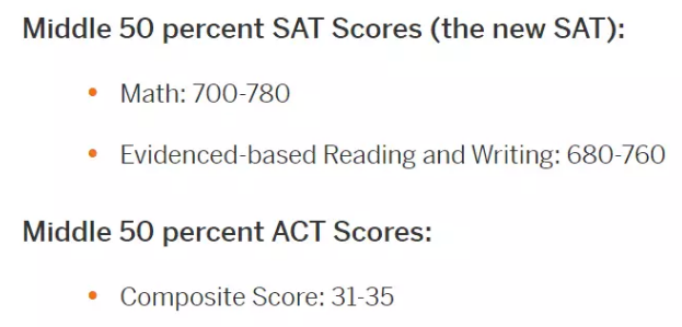 中间 50%申请者的SAT成绩与ACT成绩如下: