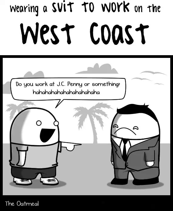 从他们穿着和生活的方式来看,人们更加随和并且不拘束。一个最好的例子就是现在 Facebook 的 CEO ,来自加利佛尼亚的 Mark Zuckerburg 会穿着一件运动衫和人字拖到华尔街参加一个很重要的金融会议。