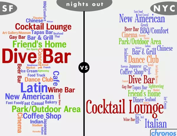 比如说,一些普遍的答案是东海岸的人被认为是得体的,快节奏的,愤世嫉俗的并且有正式的社交传统,而西海岸的人被认为更加随意,有企业家能力的,乐观的,并且他们对工作和生活的态度是很随和的。