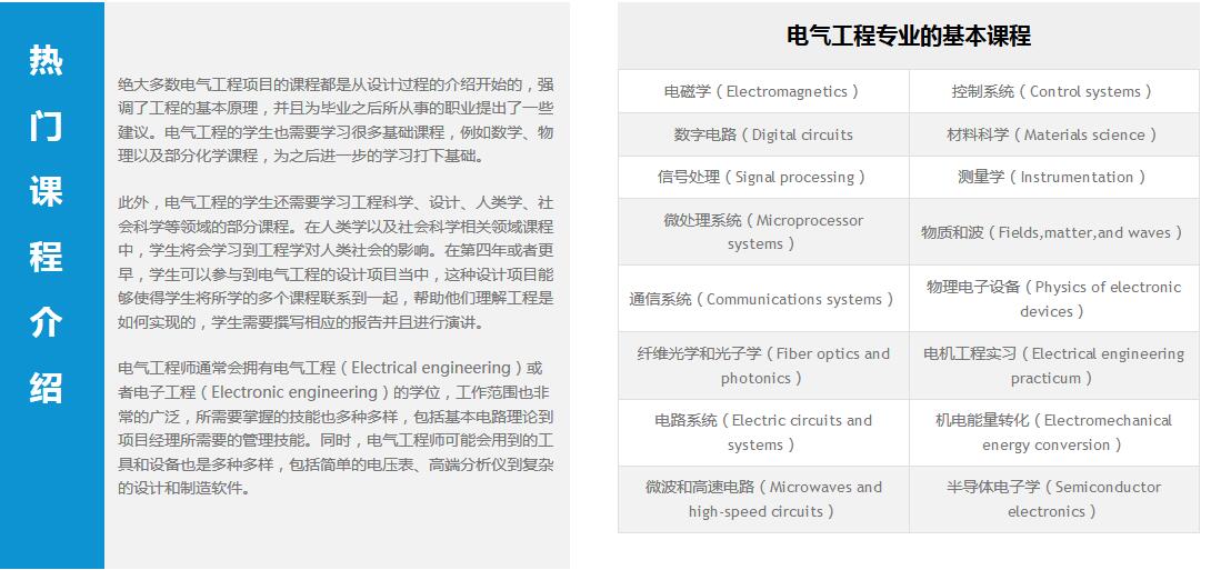 电气工程(Electrical engineering)是一个专业的工程学科,通常涉及到对电力、电子以及电磁学的研究和应用。在19世纪后半期,随着电力、电报、电话的使用以及商业化,电子工程也成为了一门独立的学科,随着电子工程学科的发展,广播和媒体成为了人们日常生活中的一部分。而晶体管的发明,以及之后集成电路的发明,将电子产品的成本降低至每个家庭都有能力使用的程度。