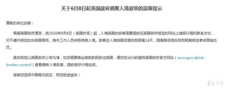 “近日,英国政府宣布将实施入境隔离政策。自6月8日起,所有入境英国人员均需在出发前在线提交在英旅行计划和个人联系方式(有关系统将于近期上线),拒绝提供有关信息者将被处以100英镑罚款,并可能被拒绝入境。