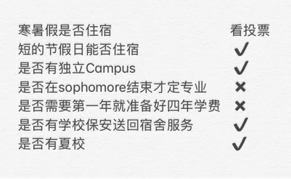 A: 宿舍没有空调,但是有暖气。前两年强制住宿,后两年的话,校外(Off Campus)会比学校宿舍便宜 ,不过距离可能远一点,需要坐公交车才能到校。