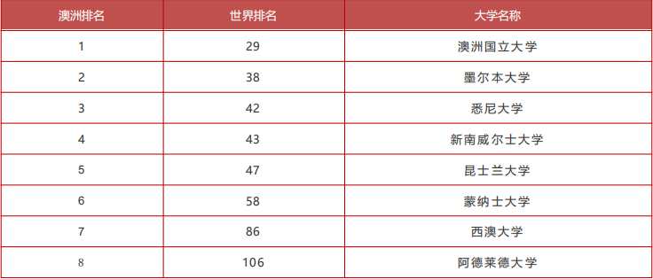 紧随其后的是qs排名位于第38的墨尔本大学、42位的悉尼大学、43位的新南威尔士大学,和47位的昆士兰大学。