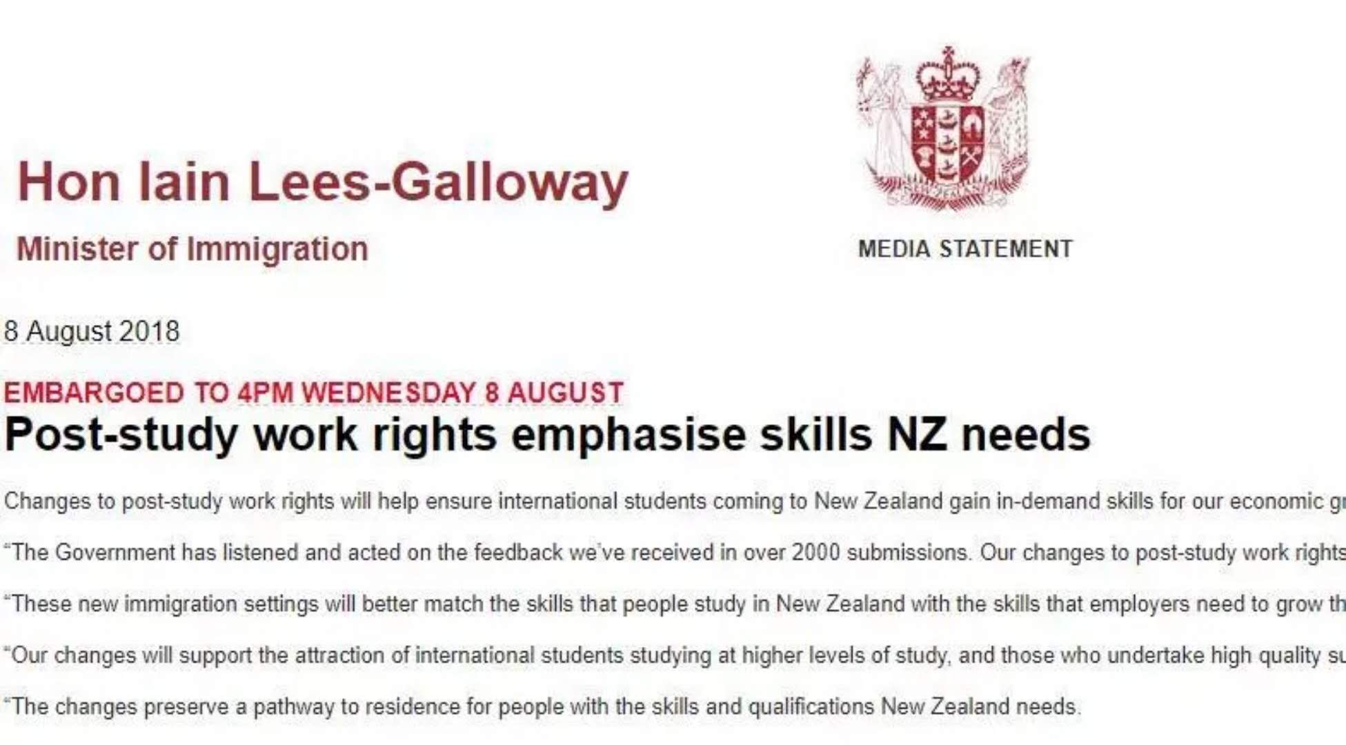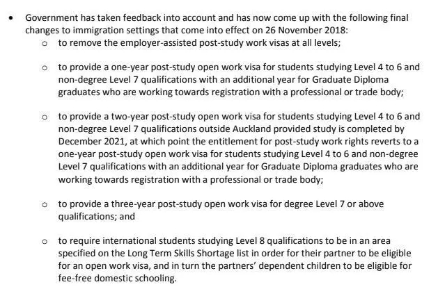 新西兰移民局认为,目前有关国际留学生毕业后工作权力的政策设定不合理,所以政府做出了一些调整。主要正对的是学士后,研究生的工作权力做出了调整,原文如下:
