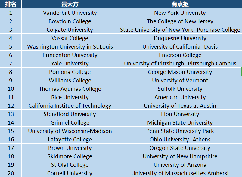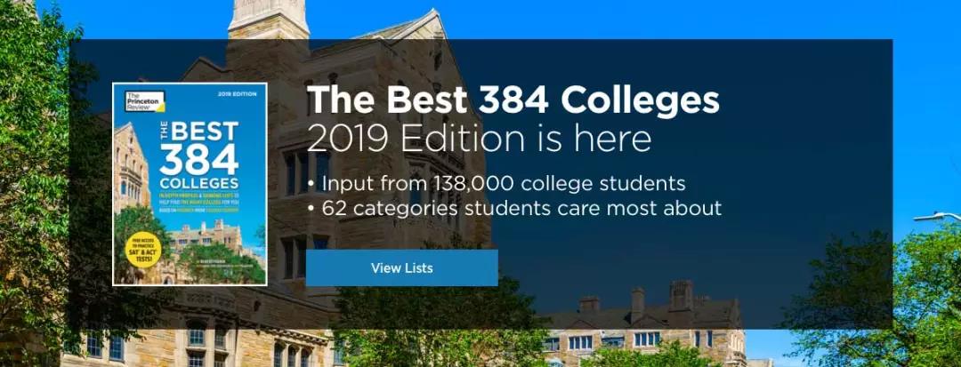 今年《普林斯顿评论》对全美 384所 大学的 138000名学生 进行调查,调查包含 课堂体验、教授水准、实验设备、图书馆、学校管理水平、学生幸福感、食堂、宿舍、校园周边环境、Greek Life 等80多个主题,最终得出 62份榜单 ,每份榜单中列举了排名最高的20所学校。