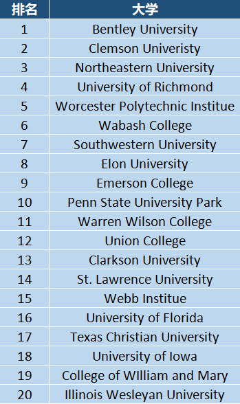 本特利大学经常邀请波士顿地区各类公司办讲座,还会邀请猎头公司来帮学生做模拟面试和简历修改,因此 连续三年在《普林斯顿评论》最佳就业指导位列第一。