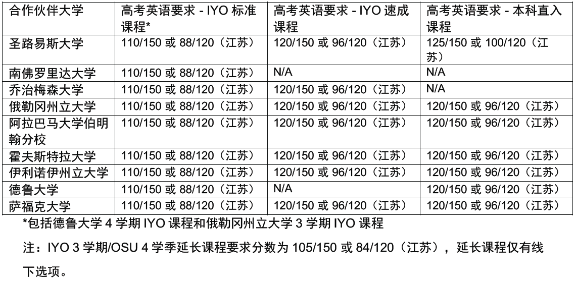 圣路易斯大学的直入要求为:125/150分制,或100/120分制﹙江苏﹚。