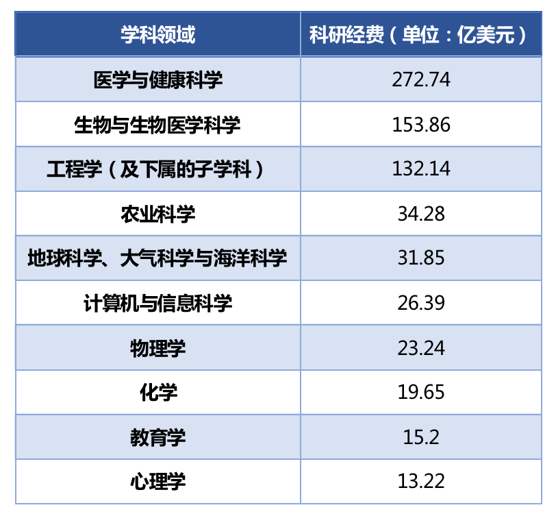 从上表中我们可以看出医学和生物类的专业领域占据了科研经费的大头,毕竟人生最大的几件事情就是生老病死,医疗卫生服务是人类最大的刚需,再加上一年多疫情的持续肆虐,可以预见未来社会对生物和医学专业人才的需求将会持续攀升。