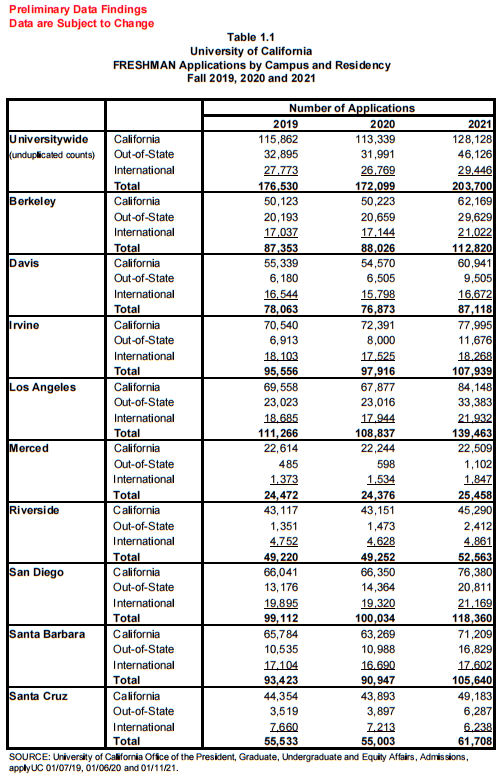 早在今年1月底,加州大学就公布了2020-2021申请季的申请数据: