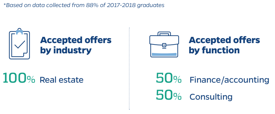 就职公司例子 : 苹果、中国银行、彭博、中信证券、渣打银行、四大会计师事务所、高盛、摩根斯坦利、摩根大通、中金公司、BCG、联合国、麦肯锡等 房地产硕士(MSREI)
