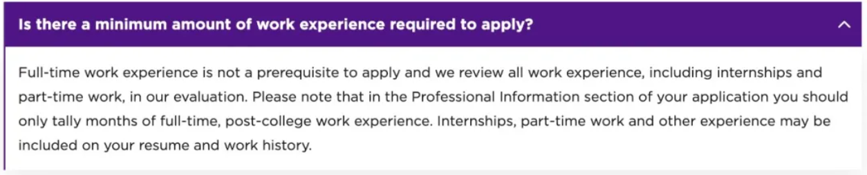 相比Stern商学院对工作经验的严格要求, 联合培养硕士项目对于工作经验的要求并不高 ,对那些经历不足的应届生而言,更加友好。