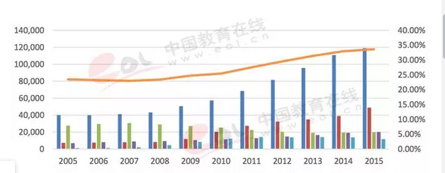 根据这份报告,截至 2016 年底,中国在加留学生依然以大学生为主,占总比例的 56% ,但已能看出,留学人群开始逐渐低龄化。