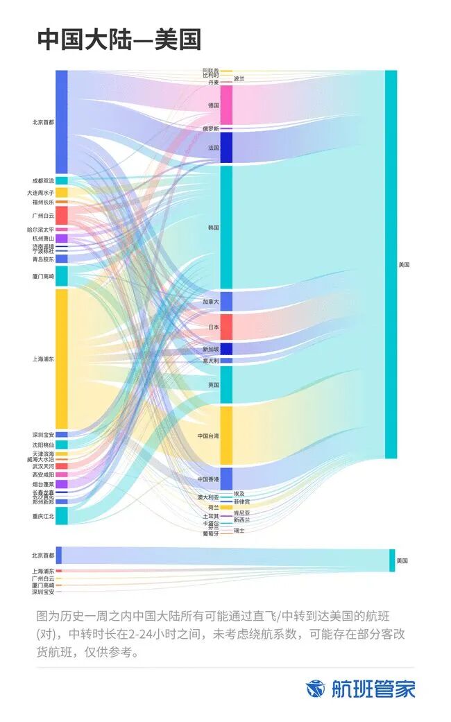 这意味着,原本就供不应求的中美航班遭遇重创,直接影响即将赴美留学的学生,而且航班的客座率受限,大部分留学生只能通过转机去美国,中美航线票价也将再次飙升。
