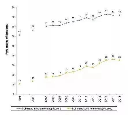 尽管越来越多的学生申请更多数量的大学,但是高校并没有因为学生数量的增加而显著扩张他们的班级规模。由于入学率是最重要的,大学不希望一下子全部拒绝那些有竞争力但又不足以得到录取的学生,所以这些学生将被列入等候名单。
