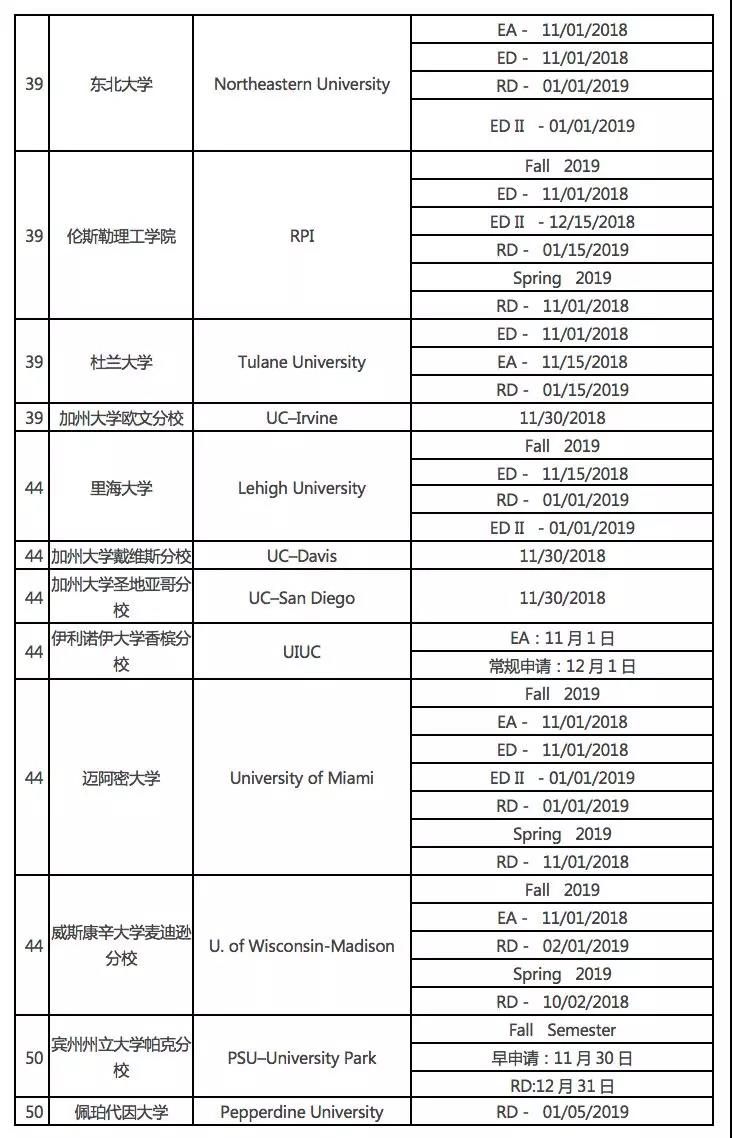 了解了申请趋势,也要了解申请截止日期。下面一起随快报君来看看美国秋季申请大军的申请截止日期~有些学校有春季入学,大家可以看标有Spring的学校。