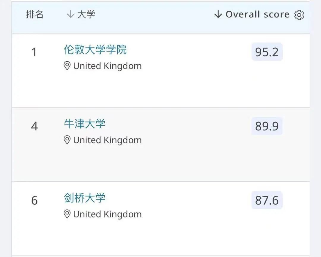 教育学一直是全球留学申请的热门专业,英国以其完善的高等教育体系, 高标准的教育水准和一流的教学设备一直受到全球学生的关注,且毕业之后就业前景也很不错。根据2021年QS 教育学专业排名来看,英国UCL位列世界第一,牛津和剑桥分别是世界第4、第6,世界前十里有3所来自英国。总体来说英国的教育学专业在世界排名上还是比较亮眼的: