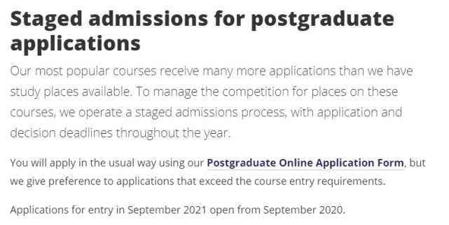 中档“985”当然,除了古老大学,还有中部位置的985,爱丁堡大学,布里斯托大学,以及曼彻斯特大学等等都是其中佼佼者,之后还有年轻大学像黑马一样展露头角像华威大学这种,也是985种子选手。申请时间:爱丁堡大学的22fall硕士专业一般将在2021年10月开放申请。布里斯托大学22fall申请将于2021年10月开放。曼彻斯特大学的网申系统部分专业已开始递交申请啦,但学校要到10月中旬才会开始审理。华威大学目前未公布22fall申请开放日期,参考去年是在10月12日开放的。末流“985”末流985的特点一般就是实力不如顶级211,录取分也低,但其实学校在某些方面又很强。英国的末流985当属巴斯大学,这所学校其实有很多优质点,校监也是王室,每年也得到大量的资助和教育拨款,研究质量也很高。但这个学校比较小,只有四个大系,不是综合学校,招生还比较精简,而且师资和生源整体比较少,所以受到QS等拖累,但在当地口碑都不错,也是富人爱去的一个学校,本科也相当不错,他们家本科预科也是顶级预科之一。申请时间:目前,巴斯大学还未公布22Fall申请开放时间,但参考去年,是在9月9日开放申请的,所以今年应该也相差不多。顶级“211”说完了985,我们再说下英国哪些大学可以被称作211。211学校基本上受当地城市认可较高。这类的学校其实是以罗素集团成员的学校为主,英国有24所,也是研究质量比较高,每年获得英政府拨款比较多的学校。顶级的211主要有伯明翰大学,格拉斯哥大学,谢菲尔德大学,利兹大学,诺丁汉大学,南安普顿大学以及利物浦大学。这几所学校其实还有一个称呼,英国红砖大学,主要出现在英格兰的六大重要工业城市而成立的高等研究学院,所以学校一般都是每个相对大点英国城市的招牌。申请时间:伯明翰大学去年是10月26日截止第一轮递交申请,学校推荐在截止日期前三个月内递交申请。谢菲尔德大学尚未公布22fall申请时间,参考去年的开放申请时间是9月开始。利兹大学基本上是每年10月开始开放申请。诺丁汉大学大部分硕士专业目前已开放22fall硕士申请。南安普顿大学已于8月10日开始接受申请。利物浦大学暂未发布2022年开放申请时间。中档“211”中档211主要有贝尔法斯特女王大学(英国女王大学),伦敦大学玛丽皇后学院,以及卡迪夫大学,埃克塞特大学。申请时间:英国女王大学于2021年9月1日开放了2022年秋季入学申请。伦敦大学玛丽皇后学院参考去年,预计10月5日左右开放申请。卡迪夫大学目前已开放大部分硕士专业2022年秋季入学申请。埃克塞特大学22fall申请将于2021年9月22日开放。末流“211”末流211有两所,约克大学和纽卡斯尔大学,基本上就是英国TOP30学校里的末尾。申请时间:约克大学22fall申请将于2021年9月27日开放。纽卡斯尔大学22fall申请在2021年9月开放。财经类院校除了综合类的大学,英国也有不少专业性质很强的学校,比如只收硕士和博士,不参与排名的伦敦商学院LBS,这个学校就是很特殊的存在,他有等同于G5的名气和实力,算是很强的财经类学校。还有同样地处伦敦的卡斯商学院(现改名为贝叶斯商学院),也是欧洲非常顶级的商学院,类似国内央财和上海财经这类学校。申请时间:伦敦商学院目前已经开放申请,第一轮申请截止时间为2021年9月28日。传媒类院校英国有不少传媒专业特别厉害的学校,如伦敦大学金史密斯学院,威斯敏斯特大学,莱斯特大学,东英吉利大学,这类学校和国内江南大学或中国传媒这类性质的学校一样,专注一个领域研究到精致。申请时间:伦敦大学金史密斯学院、威斯敏斯特大学、东英吉利大学目前已开放大部分硕士专业2022年秋季入学申请。莱斯特大学预计9月开放申请。艺术类院校也有像皇家音乐学院和伦敦艺术学院这类的学校是匹配八大美院一样的存在的。英国还有伦敦电影学院等也是类似国内上海上戏,北影这类的存在的。