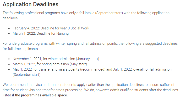 9月已经过半,加拿大各个学校的新学年已经开始,但是,对于正在准备申请的学生来说,这是一个新的起点,是开启高质量新生活的机会。那么今天就来给大家盘点一下各个学校申请开放以及截止的时间。