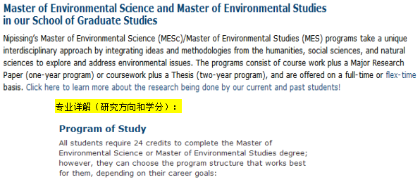 尼皮辛大学提供下列文理科系级教育科系学位课程