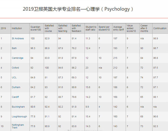 > 2019年卫报心理学专业排名
