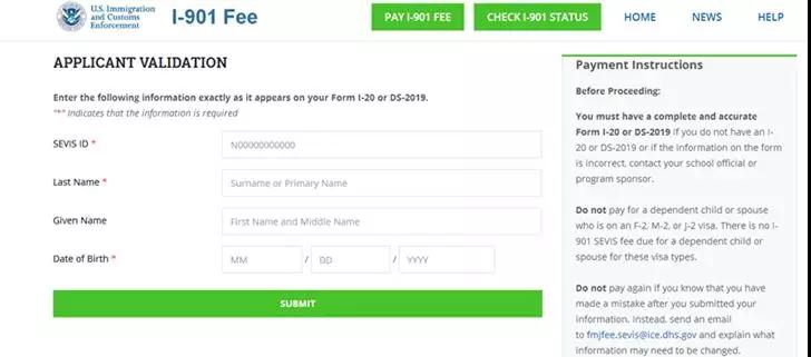 输入I-20,护照信息,缴费即可完成操作