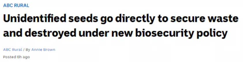 从11月8日开始,进口政策发生了变化。任何进入澳洲的不明种子将被直接销毁。该政策也适用于相关的肉类产品。
