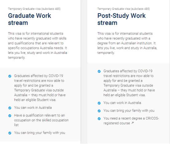 澳大利亚毕业生工签 485 (Temporary Grauate Visa),485签证分为2个细类Grauate Work stream和Post-Stuy Work stream。