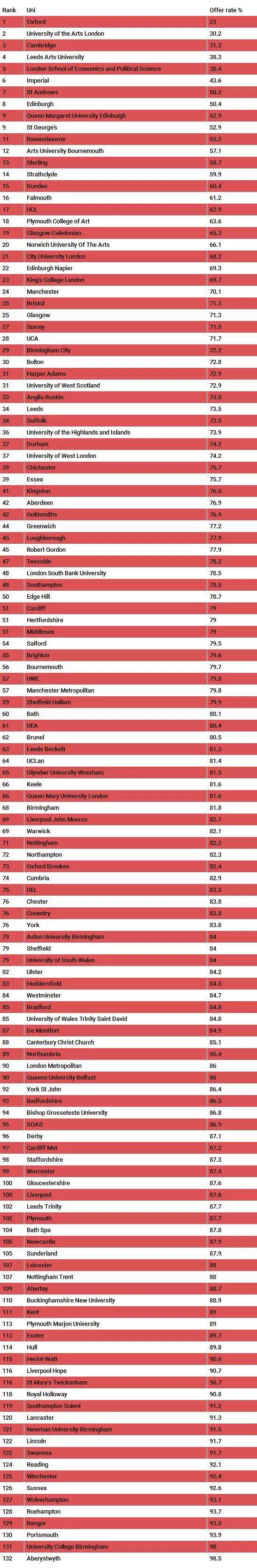 英国大学 OFFER 录取率多少?