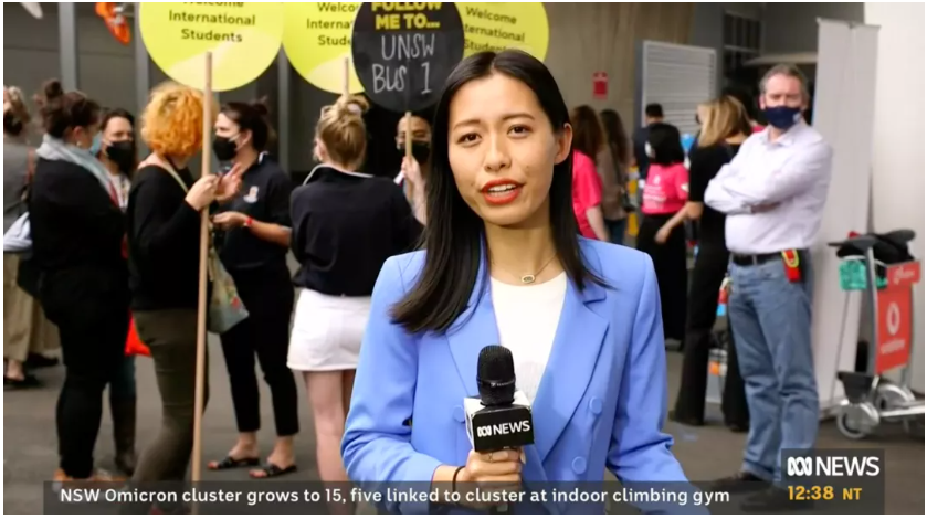 现场聚集着欢迎留学生的媒体和高校相关工作人员, 他们都手举标语牌欢迎留学生返澳, 整个机场都充满着愉悦的气氛。