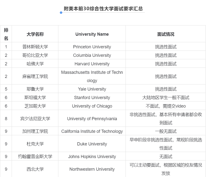 如果目标是TOP20,或者顶尖的文理学院,尽量参加面试;如果学校没有邀请面试,想通过面试表现一下的同学也可以主动申请面试。