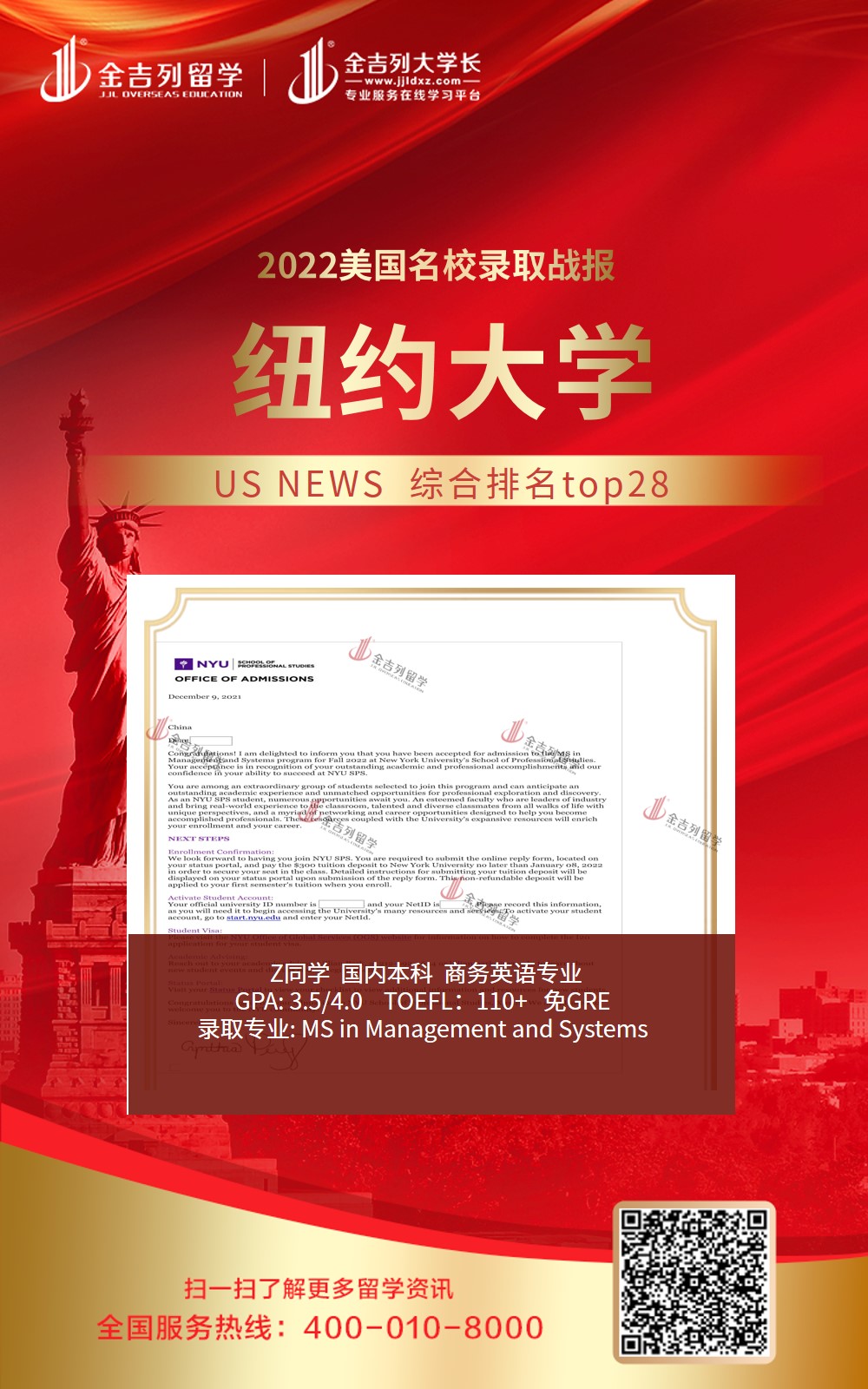 NYU3纽约大学管理和系统专业录取!