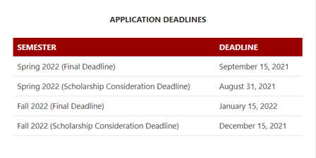 GRE 普通考试: 令人满意且有效的考试成绩。 有效的 GRE 成绩必须在预期申请学期开始后的五年内注明日期。 秋季学期从八月开始,春季学期从一月开始。 官方分数必须使用 ETS 学校代码 4852 从 ETS 直接报告给 USC 。不需要部门代码。
