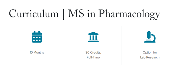 课程由两部分组成:核心课程侧重于药理学、生物化学和生理学,以及为每个学生提供的选修学分,以根据他们的兴趣定制课程。 学生有两种选择来完成他们的选修学分:课程作业选项和实验室研究选项。