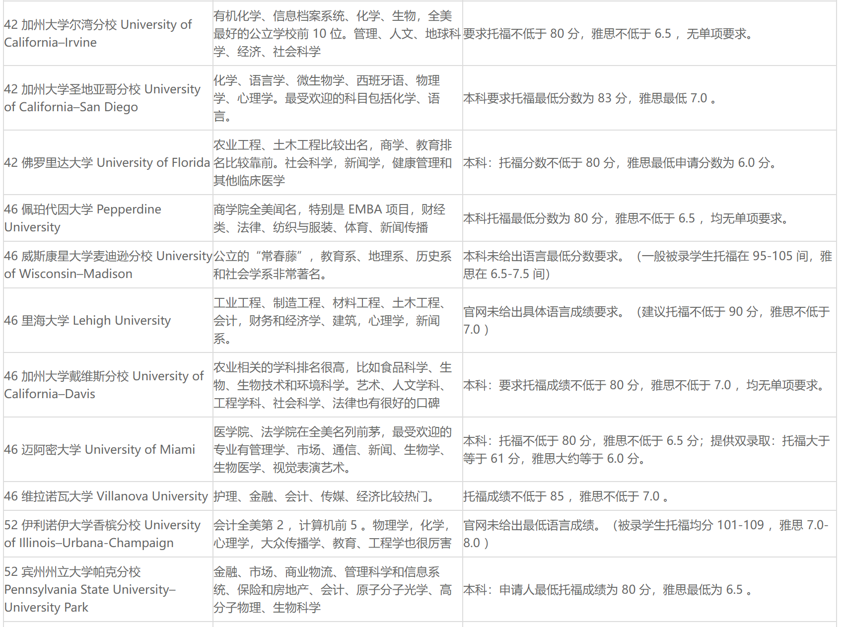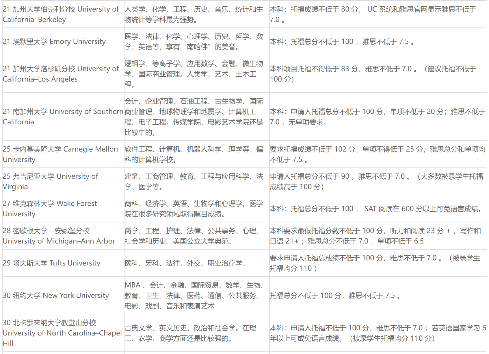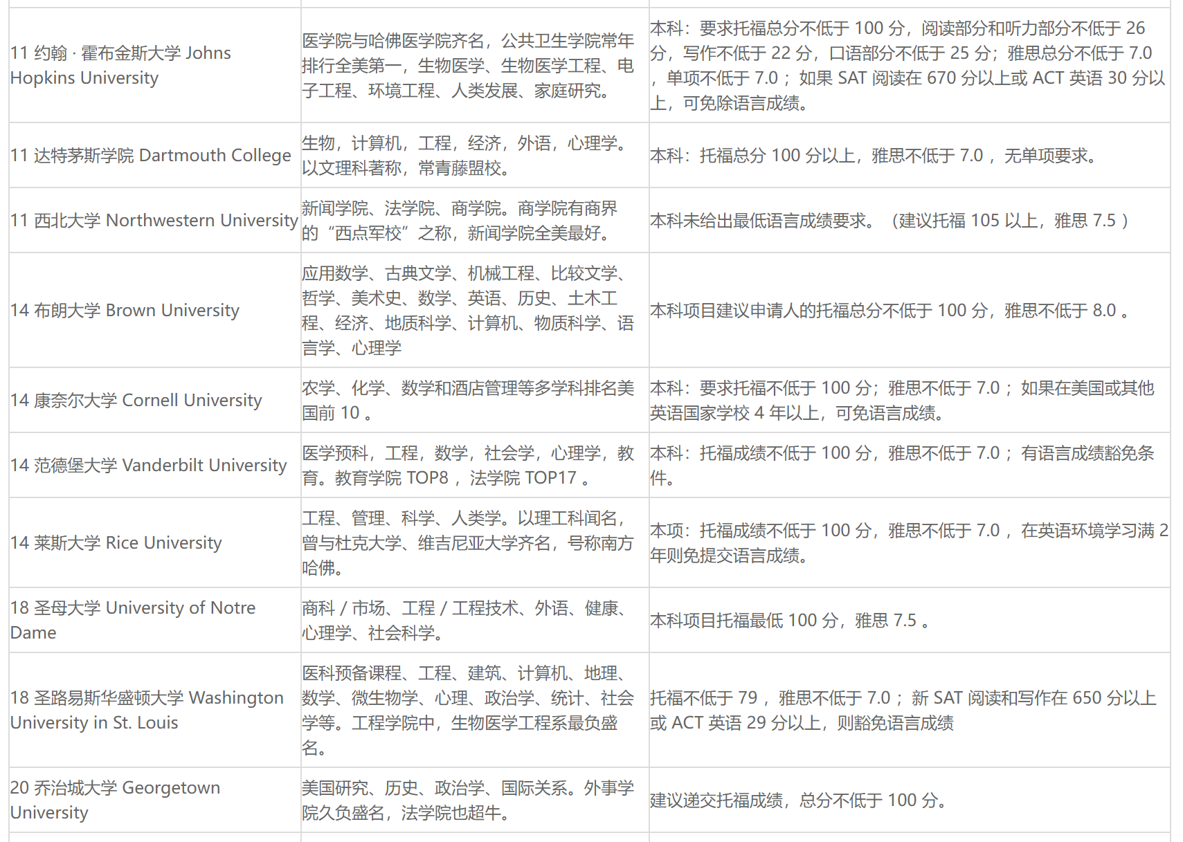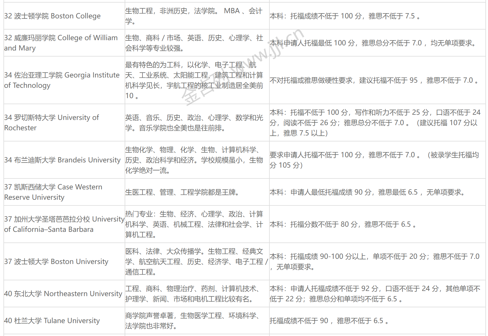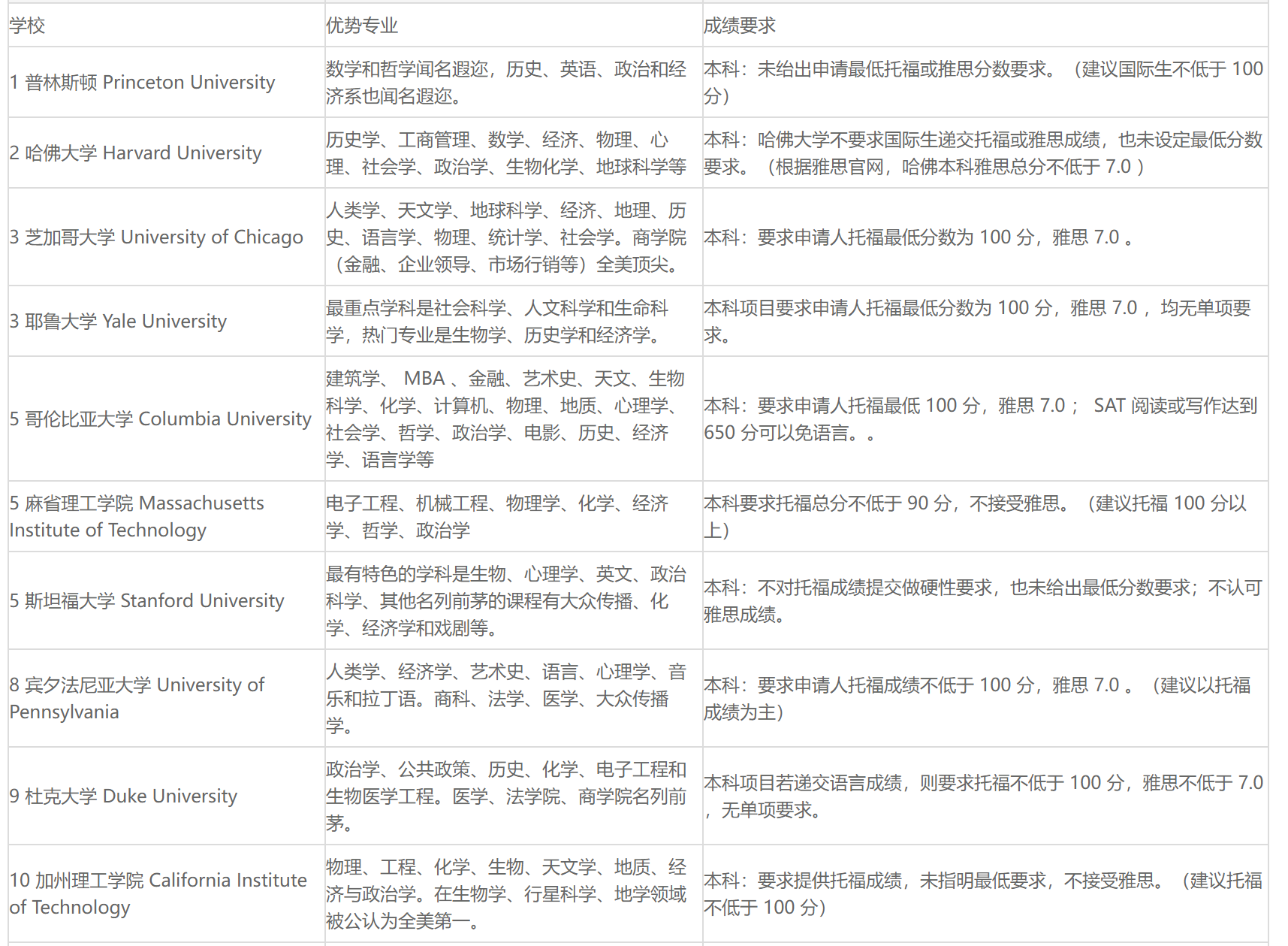 本文对美国前一百名学校的优势专业进行详细的解读,对学校本科的基本要求进行统计。