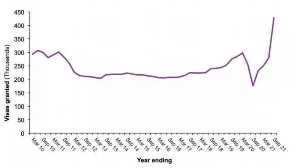 2021年是英国发放学生签证数最高年