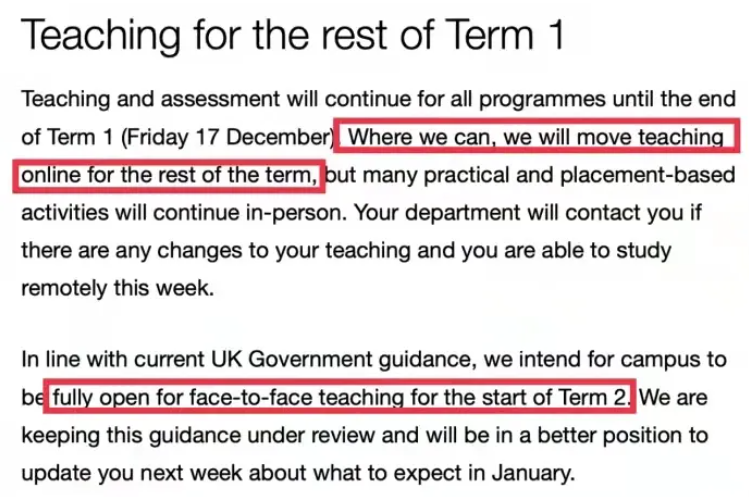不过,由于临近圣诞放假,UCL的第一学期到这周五(12月17日)就结束了, 大家更关注的其实是第二学期的教学安排。