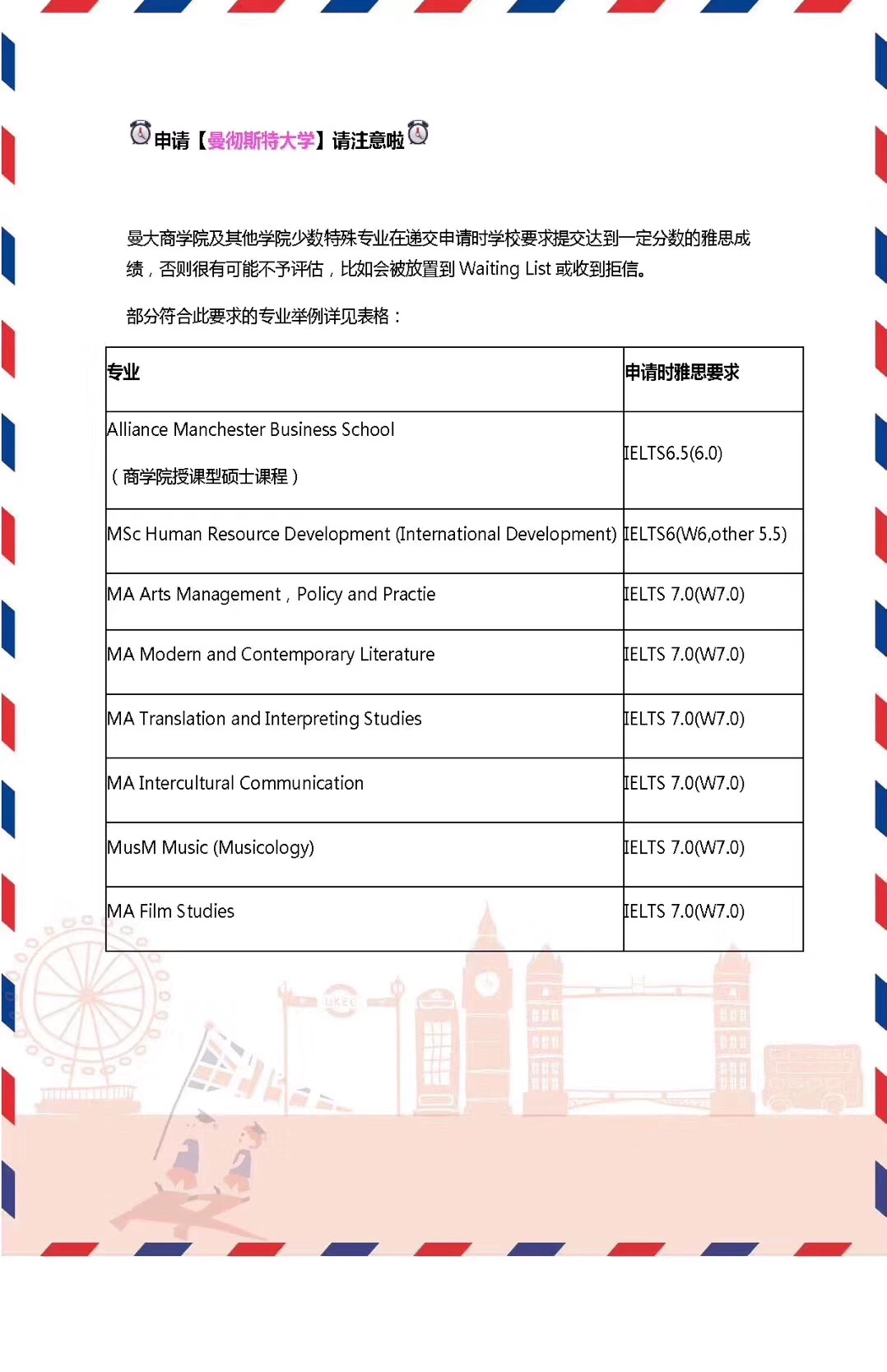 英国曼彻斯特大学需要提交雅思才可以递交的申请专业如下,各位小哥哥小姐姐们有意向申请此类专业的抓紧时间学雅思啦 !!!