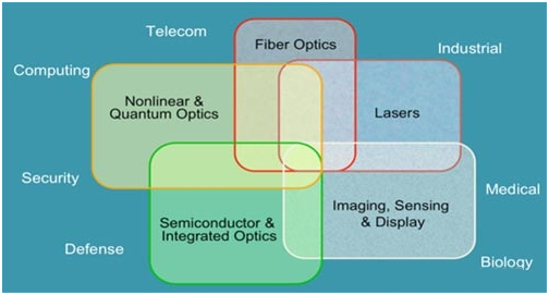 从研究角度来看,在美国大学,光子学与光学属于电气电子系的关键方向之一。本方向包括光电子学装置,超快电子学,非线性光学,微光子学,三维视觉,光通讯,软 X 光与远紫外线光学,光印刷学,光数据处理,光通讯,光计算,光数据存储,光系统设计与全息摄影,体全息摄影研究,复合光数字数据处理,图象处理与材料光学特性研究。