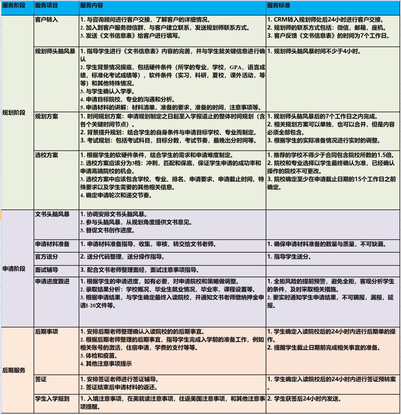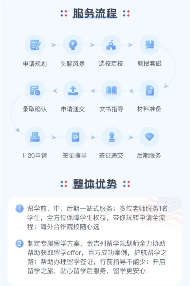 •留学服务团队结合学生综合实力和院校申请要求为学生量身制定合适的留学设计方案