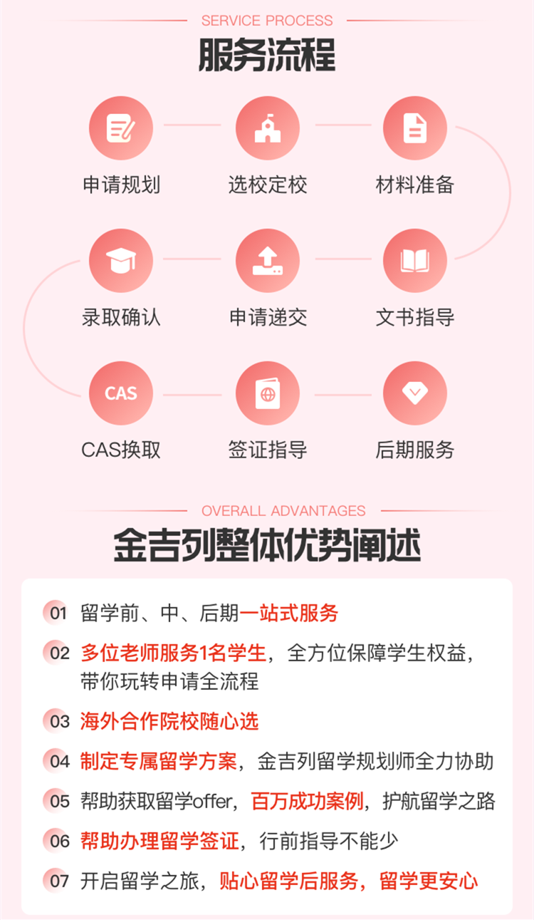 •留学服务团队结合学生综合实力和院校申请要求为学生量身制定合适的留学设计方案