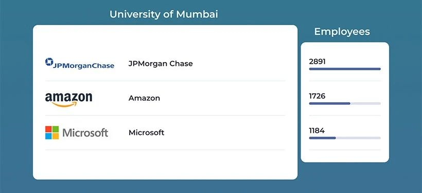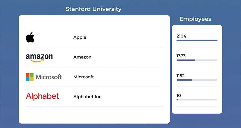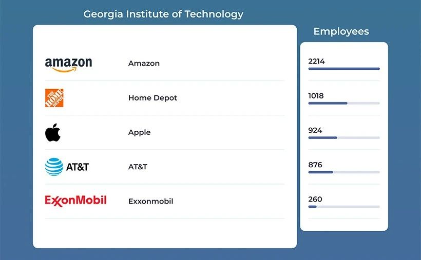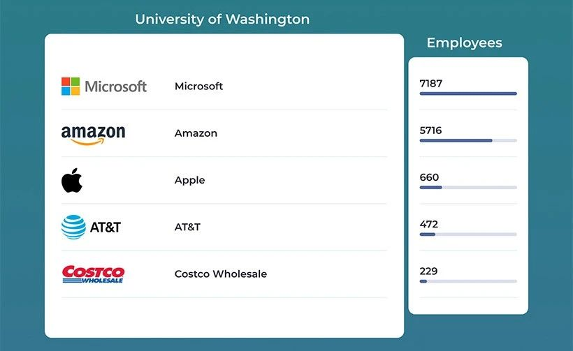 该网站还给出了排名前五的学校,在哪些公司拥有最多的毕业生。