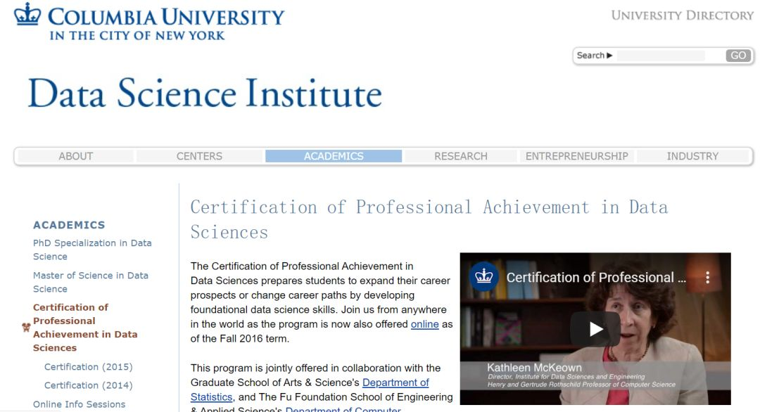 这项数据科学认证由工程与应用科学院校TheFU基金会与哥伦比亚大学艺术与科学研究生院共同建立。非学位兼职课程数据科学专业成就证书的候选人必须完成至少12个学分。